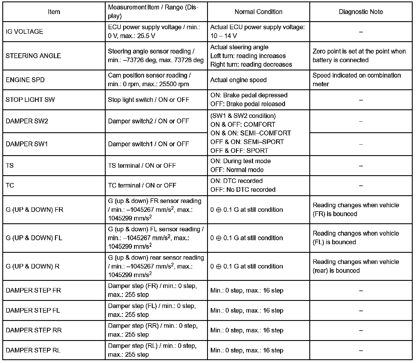 IG must be turned ON to observe data suing a hand-held tester. The vehicle is considered to be placed on a flat level surface.