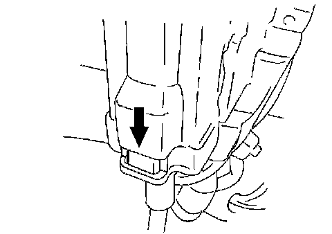 b. Using a screwdriver, disconnect the parking lock cable from the floor shift assembly and clamp.