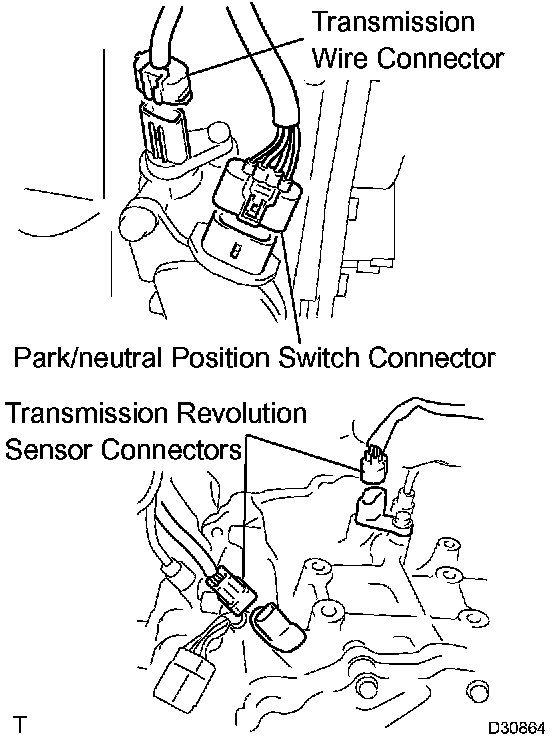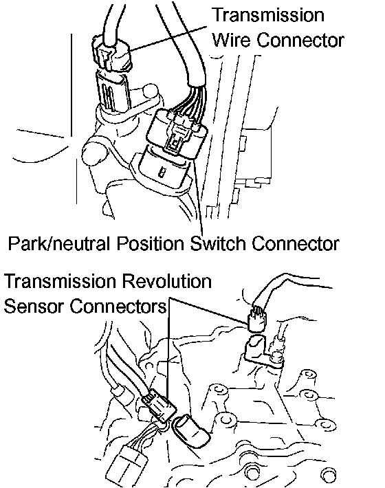 c. Disconnect the 2 transmission revolution sensor connectors.