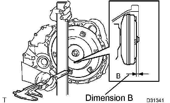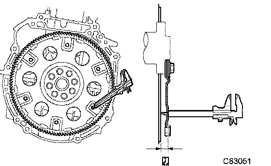 b. Using vernier calipers, measure dimension "A" between the transaxle fitting part and the converter fitting part of the drive plate.