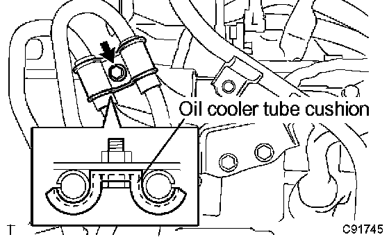 HINT: Install them so that the oil cooler tube cushion is positioned as shown in the illustration.