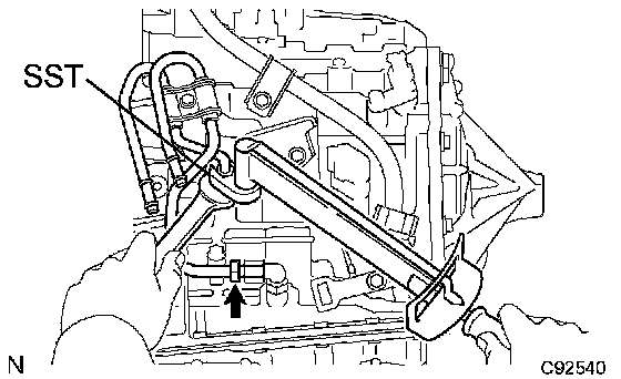 a. Using SST and spanner, disconnect the oil cooler inlet tube No.1.