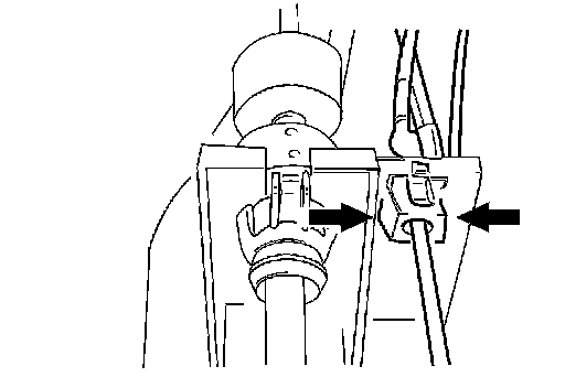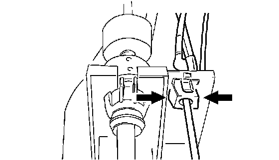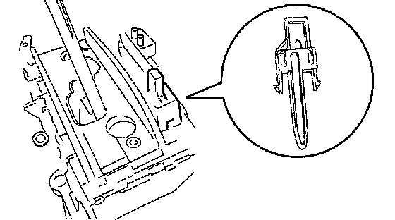 b. Using a screwdriver, disconnect the parking lock cable from the floor shift assembly and clamp.