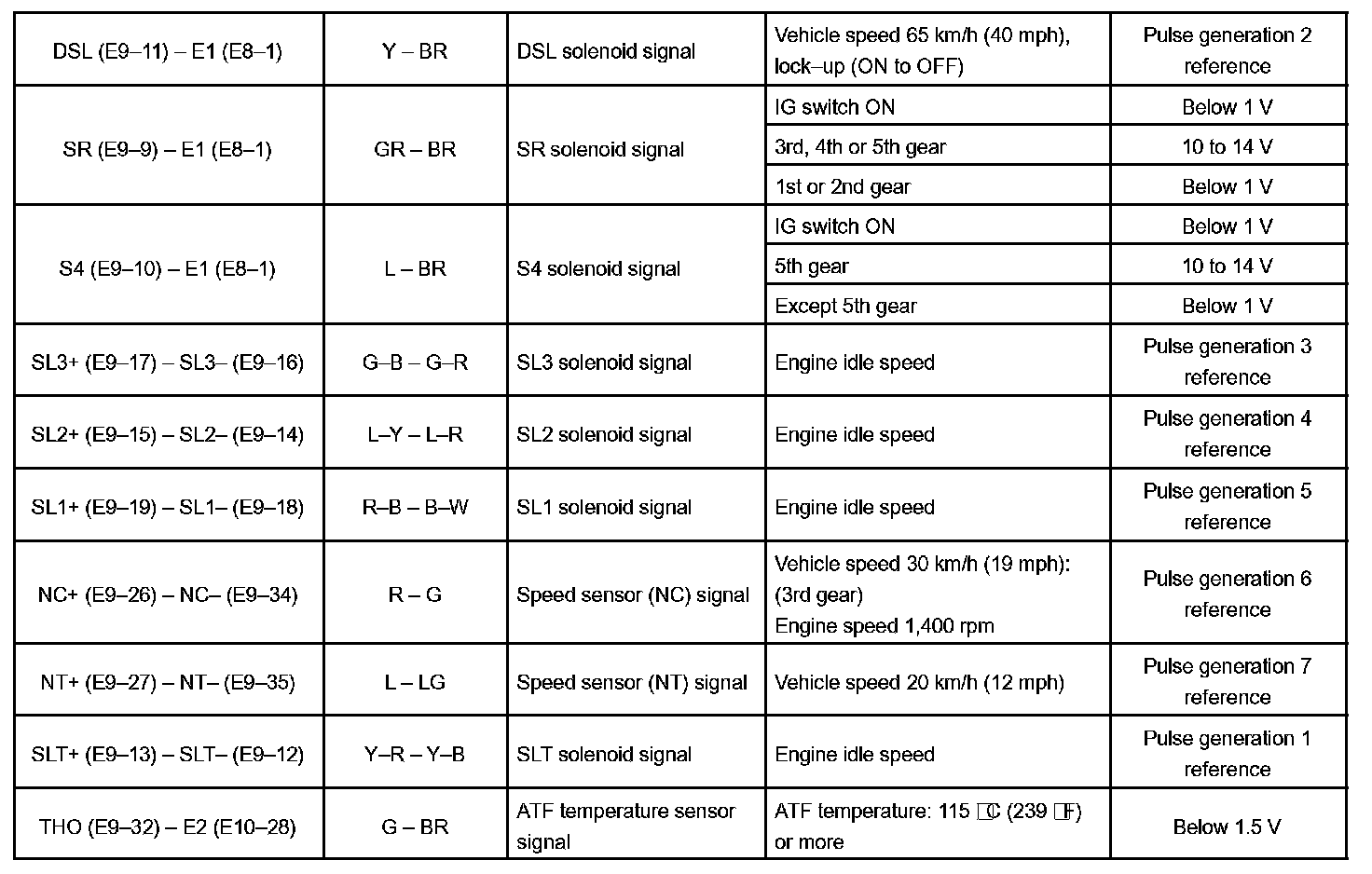 Pinout Values and Diagnostic Parameters