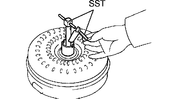 2. Install SST so that it fits in the notch of the converter hub and outer race of the one-way clutch.