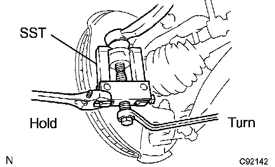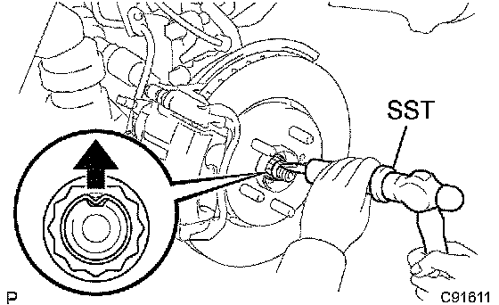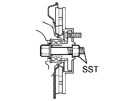 Therefore, if it is absolutely necessary to place the vehicle weight on the hub bearing, first support it with SST.