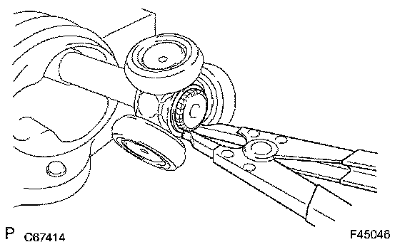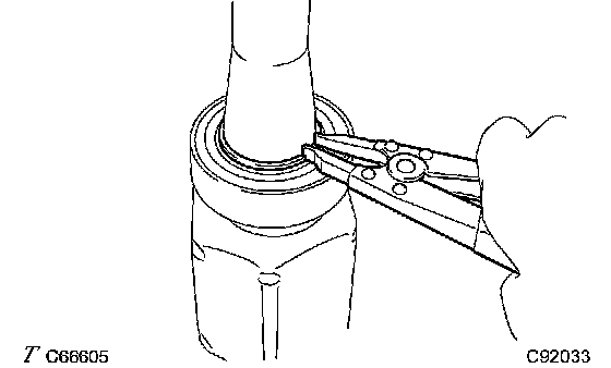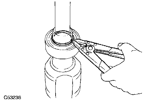 a. Using pliers, remove the drive shaft bearing bracket hole snap ring.