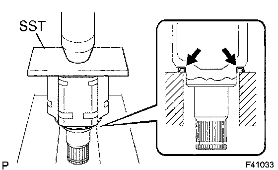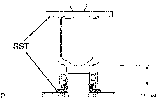 a. Using SST and a steel plate, install a new front drive shaft bearing.