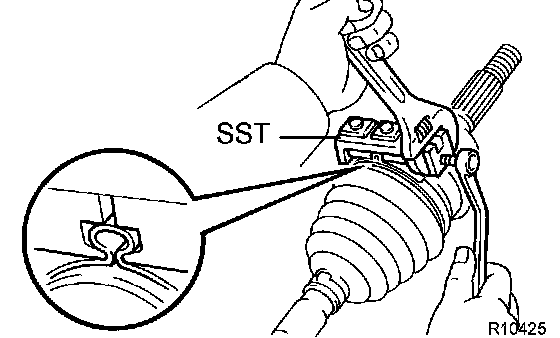 13. REMOVE FRONT AXLE INBOARD JOINT BOOT CLAMP