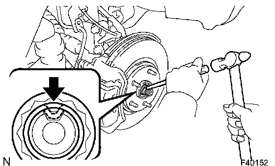 a. Using SST and a hammer, unstake the staked part of the front axle hub LH nut.