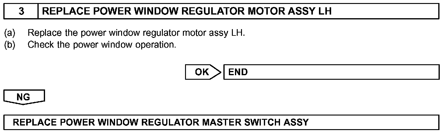 NOTE: Power window system use a large-scale body multiplex communications. First of all, confirm the communication function depending on the "how to proceed with troubleshooting", and check that there is no abnormality in the communication system. Then finally proceed with the troubleshooting. Also, if the power window system has a malfunction in the jam protection function, the power window AUTO UP/DOWN does not operate and a diagnostic code is recorded. Confirm the diagnostic code before troubleshooting.