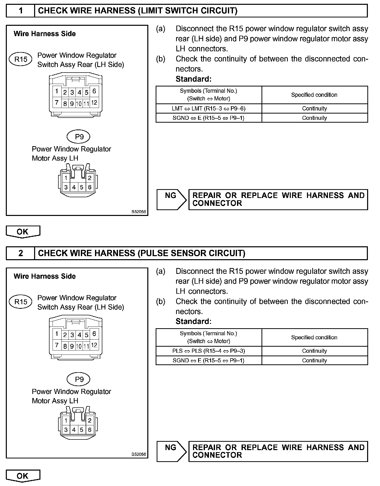 POWER WINDOW REGULATOR MOTOR ASSEMBLY LH LIMIT SWITCH AND PULSE SENSOR CIRCUIT (REAR LH DOOR)CIRCUIT DESCRIPTION