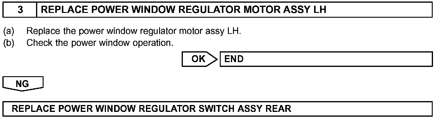 NOTE: Power window system use a large-scale body multiplex communications. First of all, confirm the communication function depending on the "how to proceed with troubleshooting", and check that there is no abnormality in the communication system. Then finally proceed with the troubleshooting. Also, if the power window system has a malfunction in the jam protection function, the power window AUTO UP/DOWN does not operate and a diagnostic code is recorded. Confirm the diagnostic code before troubleshooting.