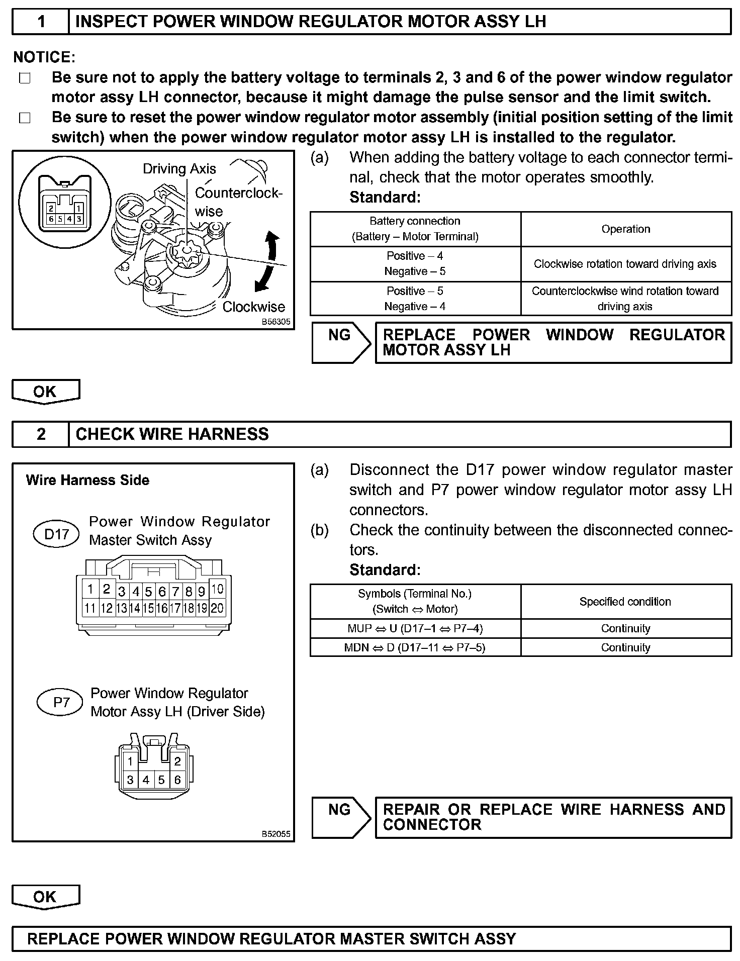 NOTE: Power window system use a large-scale body multiplex communications. First of all, confirm the communication function depending on the "how to proceed with troubleshooting", and check that there is no abnormality in the communication system. Then finally proceed with the troubleshooting. Also, if the power window system has a malfunction in the jam protection function, the power window AUTO UP/DOWN does not operate and a diagnostic code is recorded. Confirm the diagnostic code before troubleshooting.