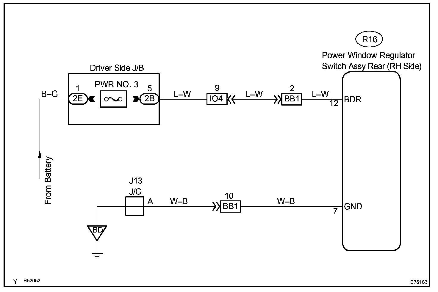 Power Window Regulator Switch Circuit (Rear RH Door)