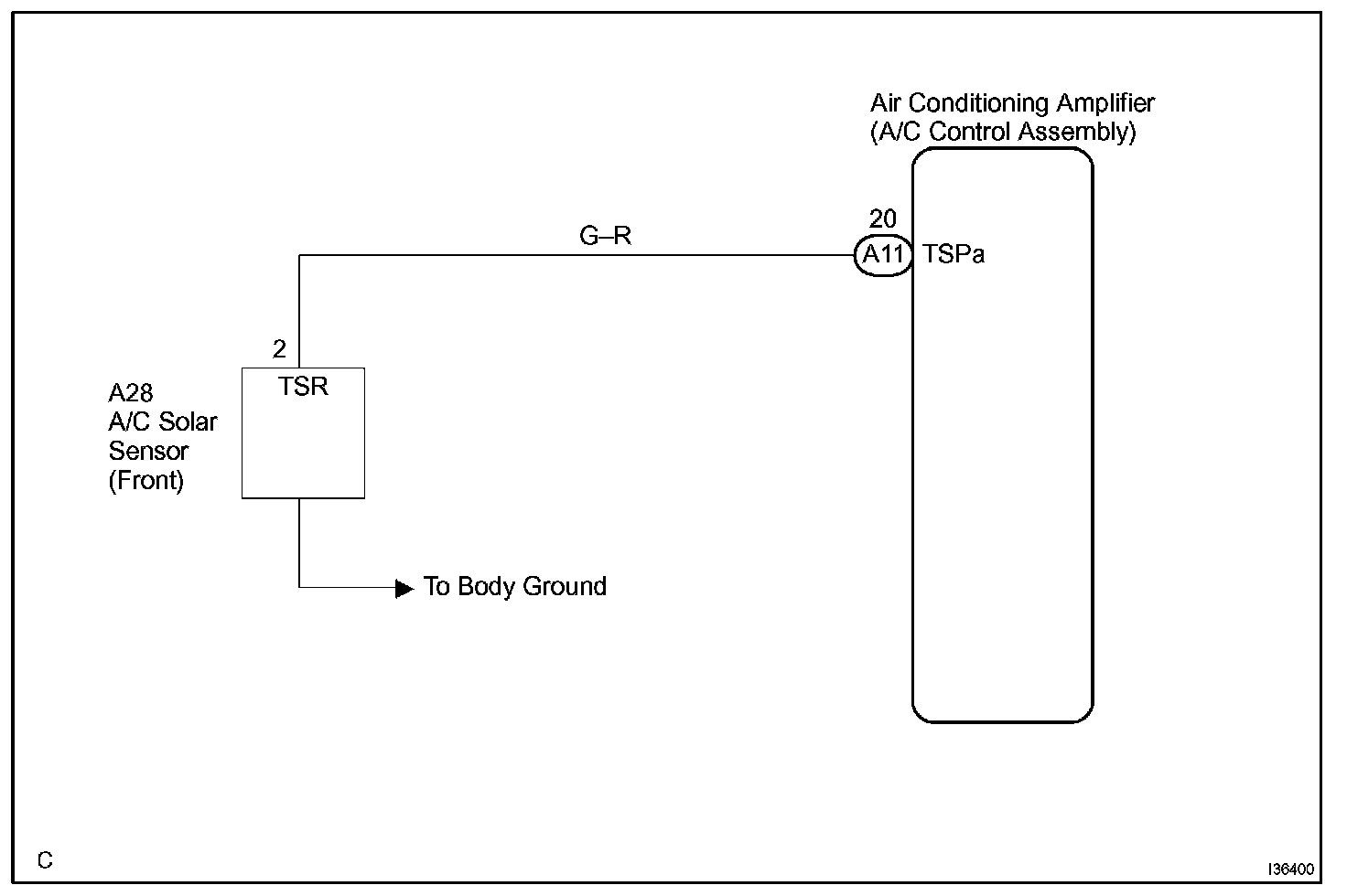 A photodiode in the A/C solar sensor detects solar radiation and sends signals to the A/C amplifier.