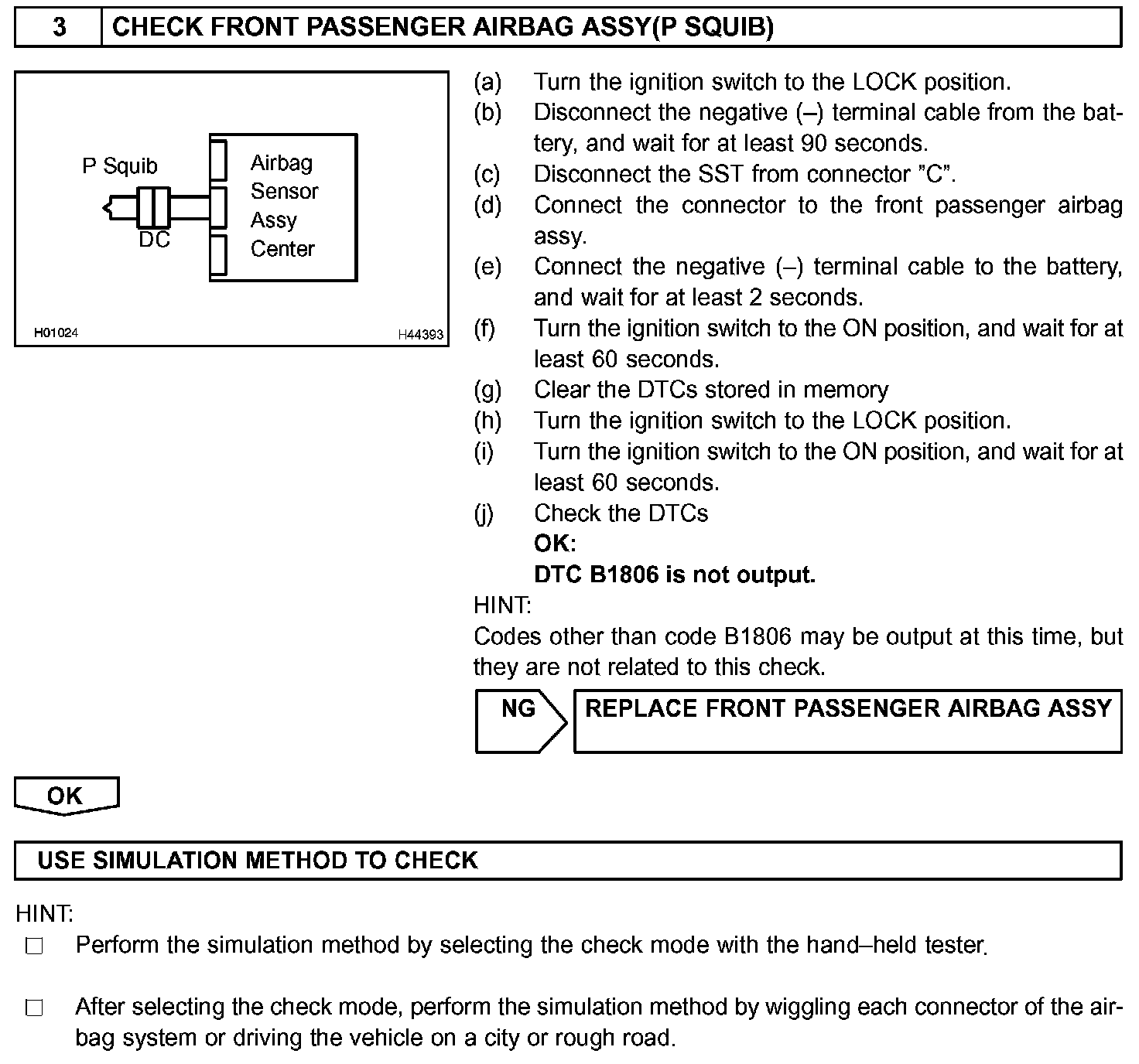 DTC B1806 OPEN IN P SQUIB CIRCUIT