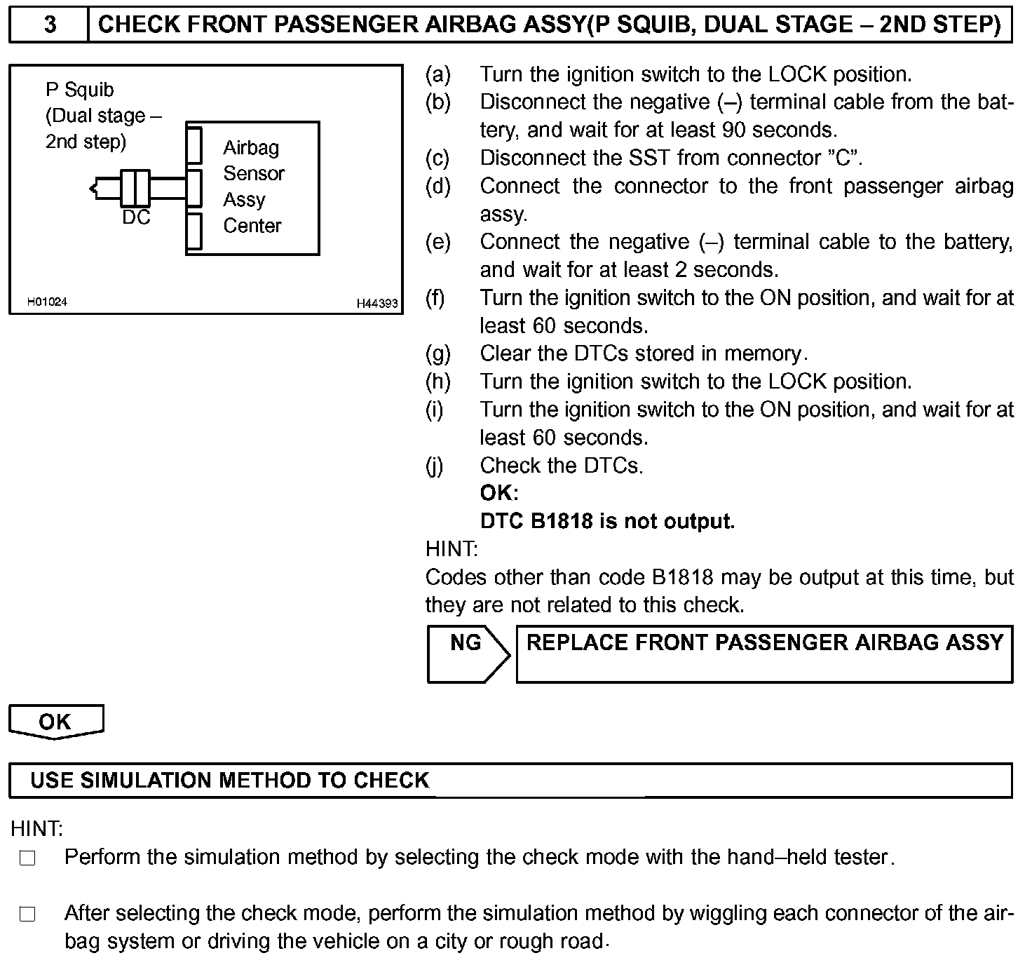 DTC B1818 SHORT IN P SQUIB (DUAL STAGE - 2ND STEP) CIRCUIT (TO B+)