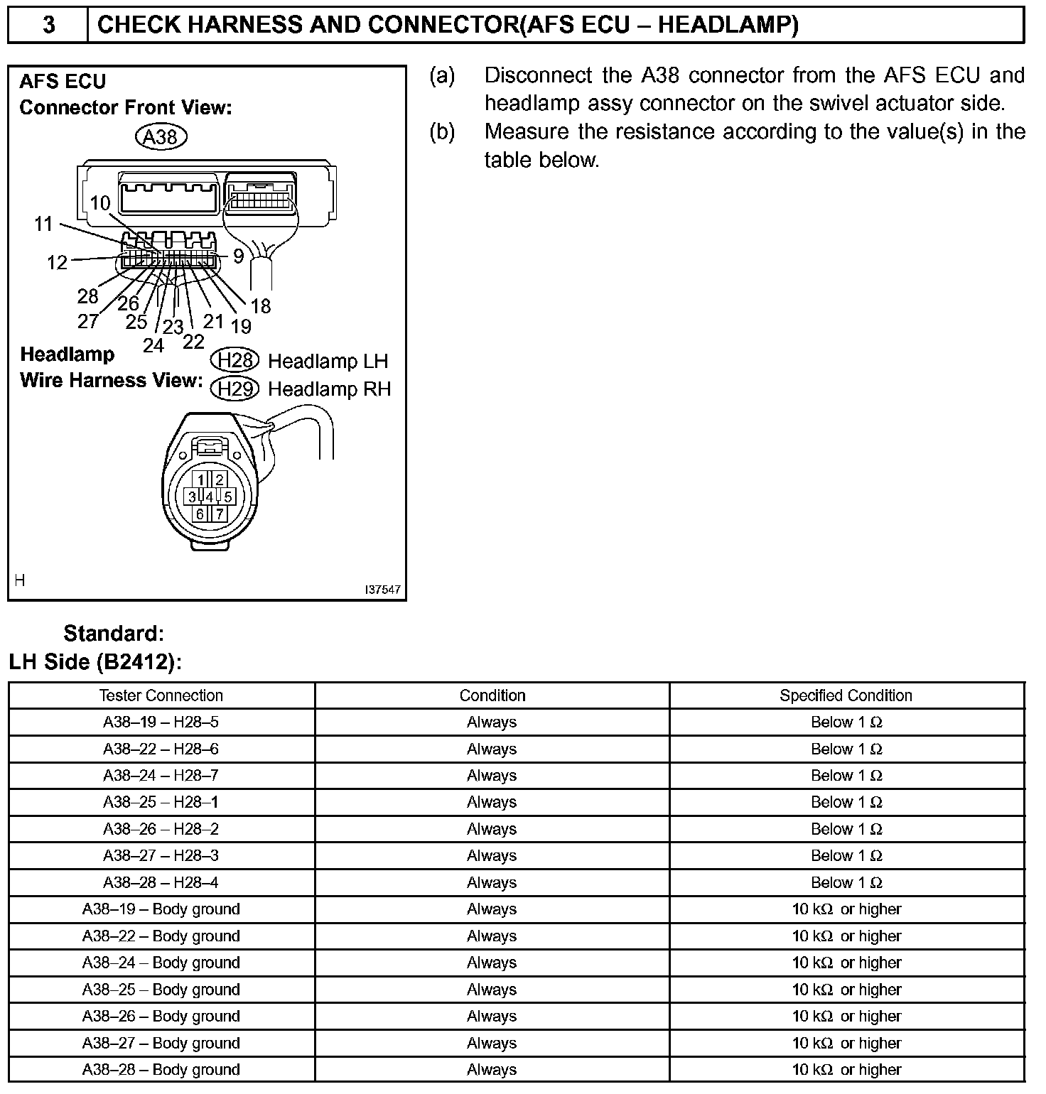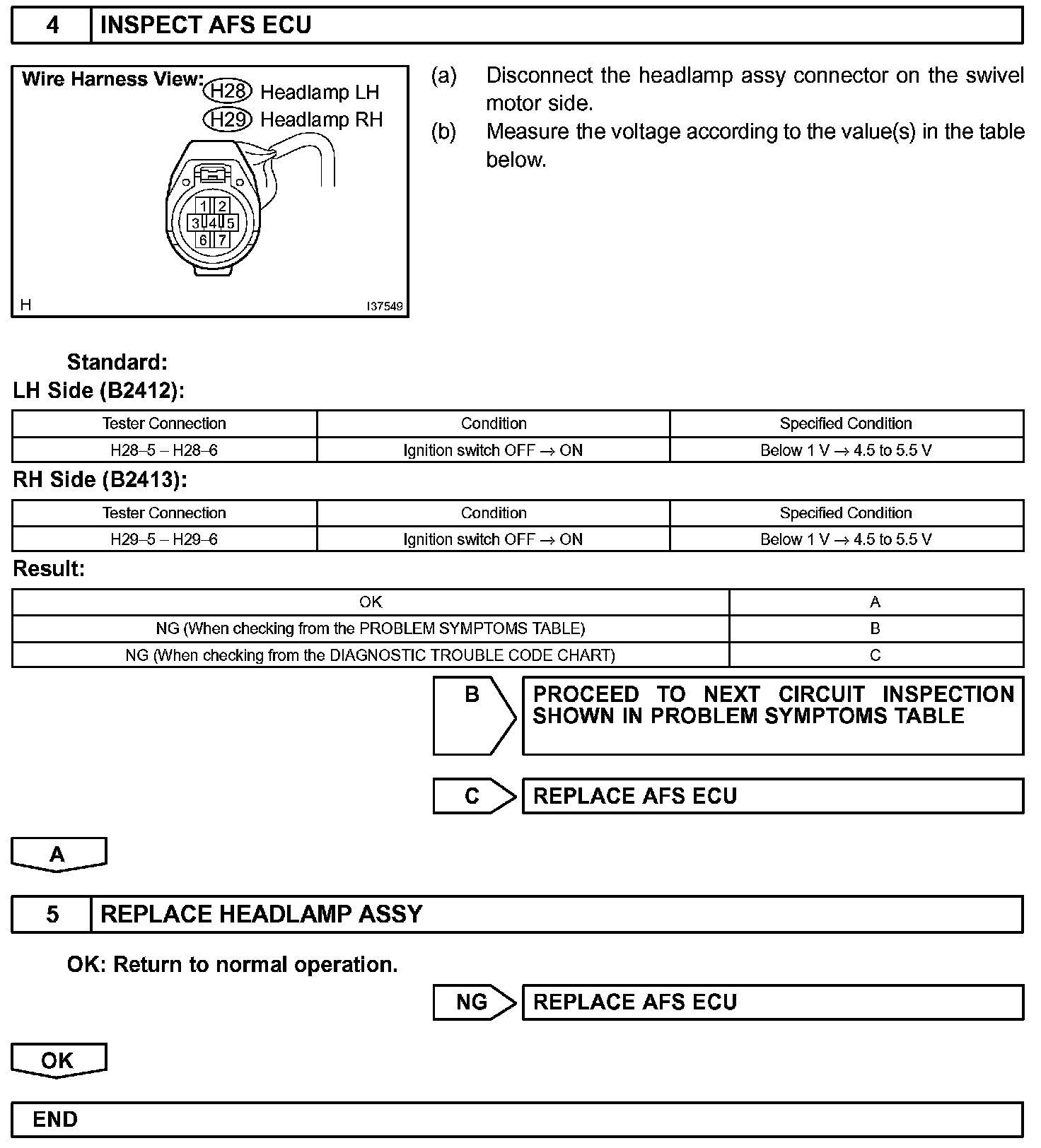 DTC B2412 HEADLIGHT SWIVEL MOTOR LH MALFUNCTION