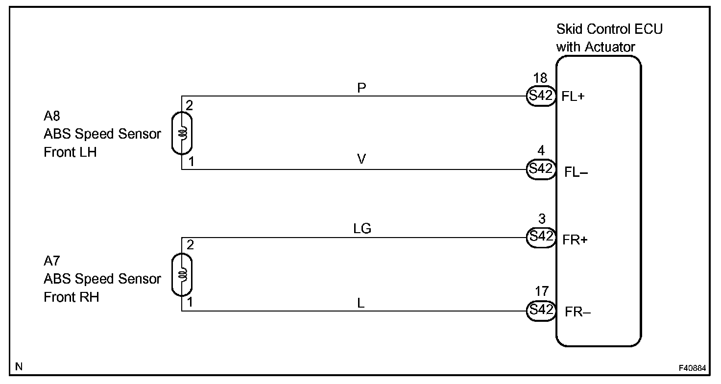 When the rotors rotate, the magnetic field emitted by the permanent magnet in the speed sensor generates an AC voltage. Since the frequency of this AC voltage changes in direct proportion to the speed of the rotor, the frequency is used by the ECU to detect the speed of each wheel.