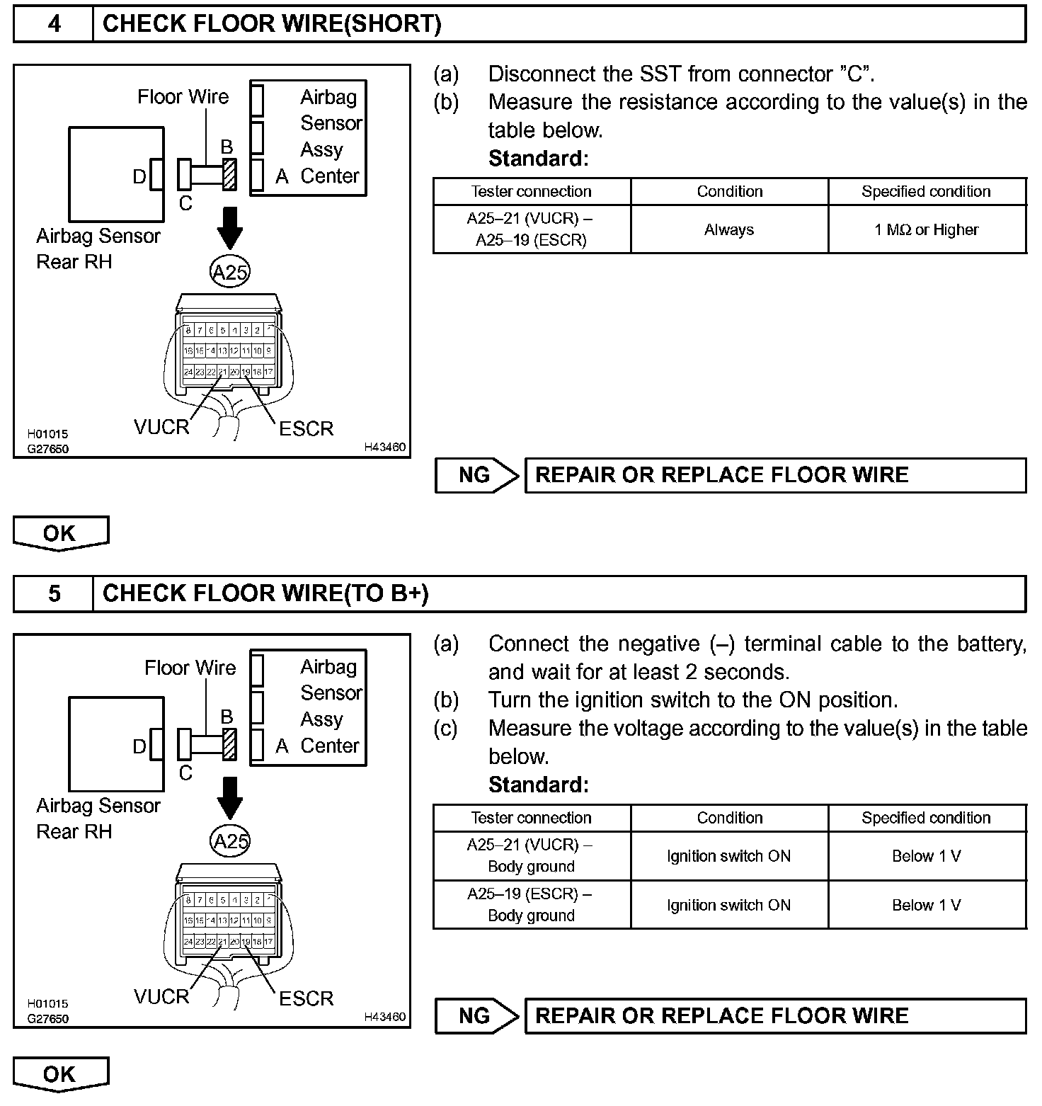 If the airbag sensor assy center receives signals from the lateral deceleration sensor, it determines whether or not the SRS should be activated.