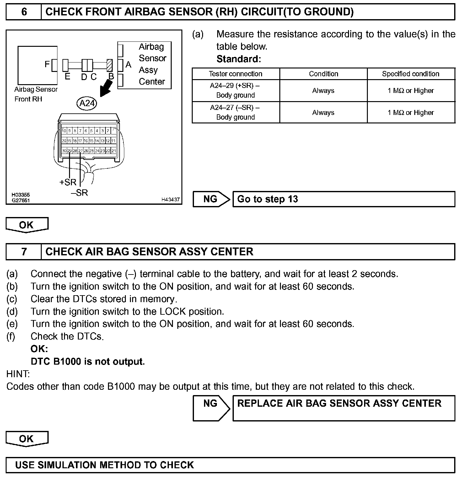 HINT: When a trouble code is displayed simultaneously with B1000, repair the malfunction indicated by this code (except B1000) first.