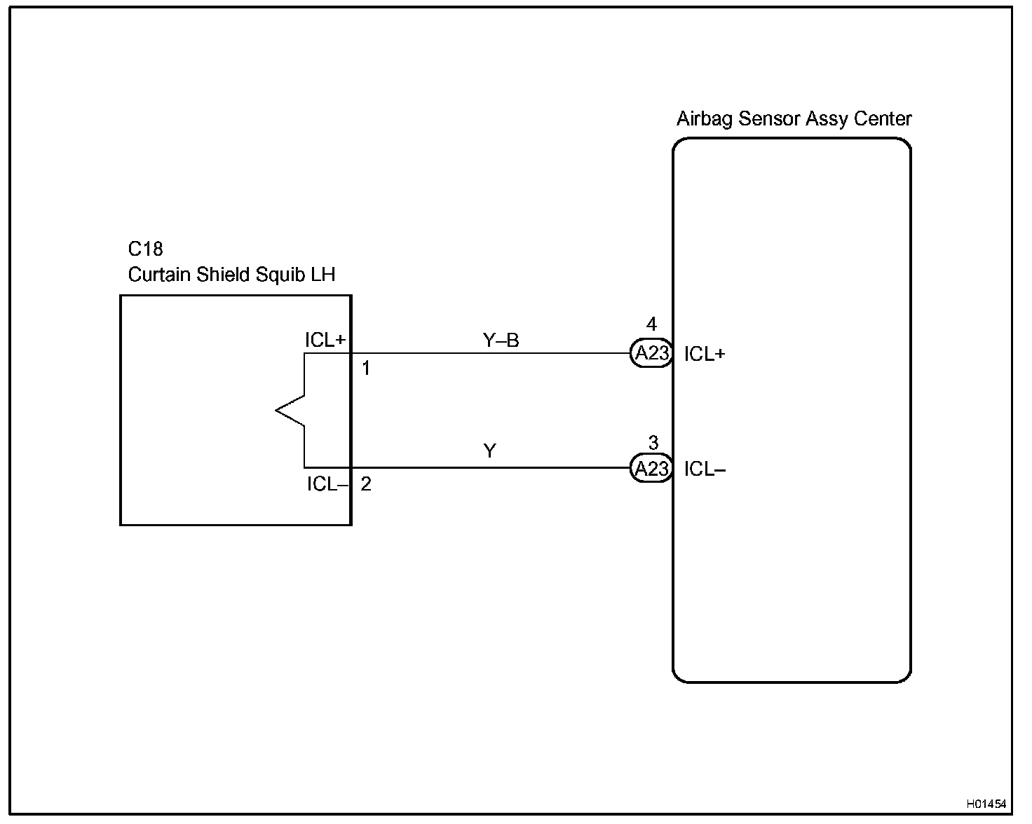 The curtain shield squib LH circuit consists of the airbag sensor assy center and the curtain shield airbag assy LH.