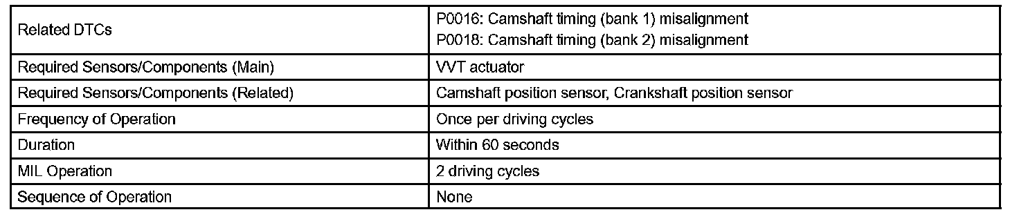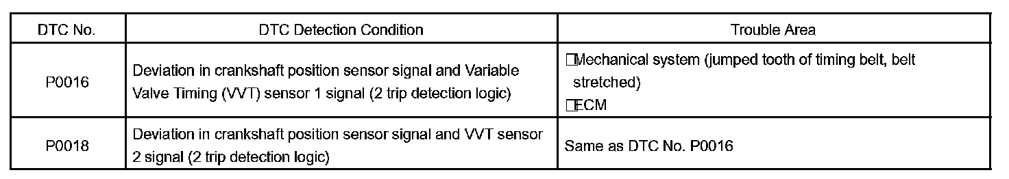 DTC P0016 CRANKSHAFT POSITION CAMSHAFT POSITION CORRELATION (BANK 1 SENSOR A)DTC Detection Condition: