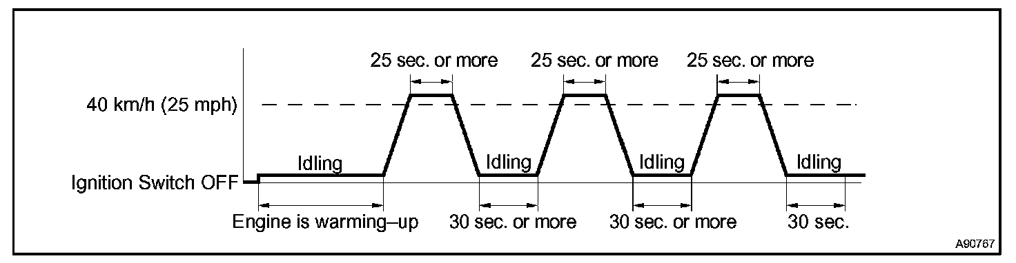 d. Allow the vehicle to run at 40 km/h (25 mph) or more for 25 seconds or more.