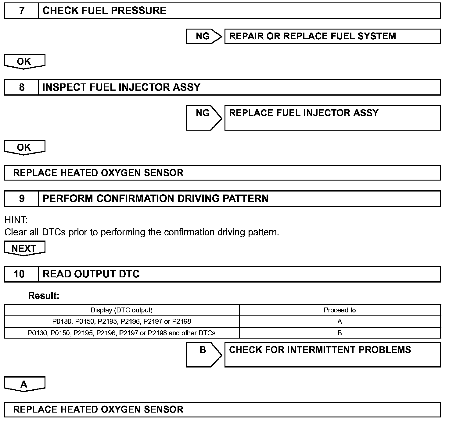 HINT: It is possible the malfunctioning area can be found using the ACTIVE TEST A/F CONTROL operation. The ACTIVE TEST can determine if the HO2S or other potential trouble areas are malfunctioning or not.