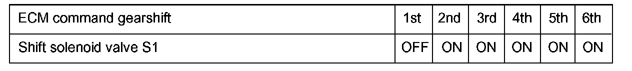 - The shift solenoid valve S1 is turned on/off normally when the shift lever is in the D position: