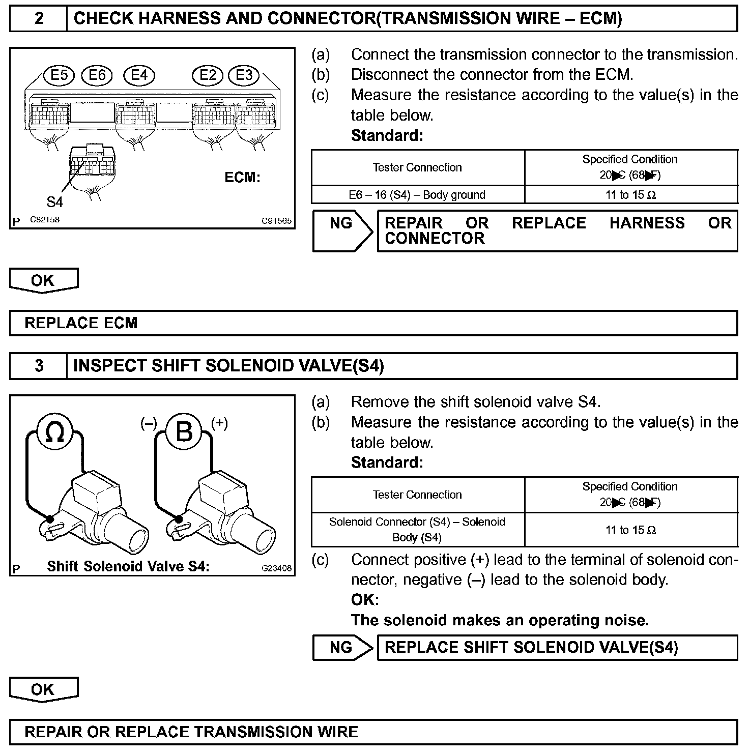 When the shift solenoid valve S4 is off, if resistance is 100 kW or more, the ECM determines there is an open in the shift solenoid valve S4 circuit.