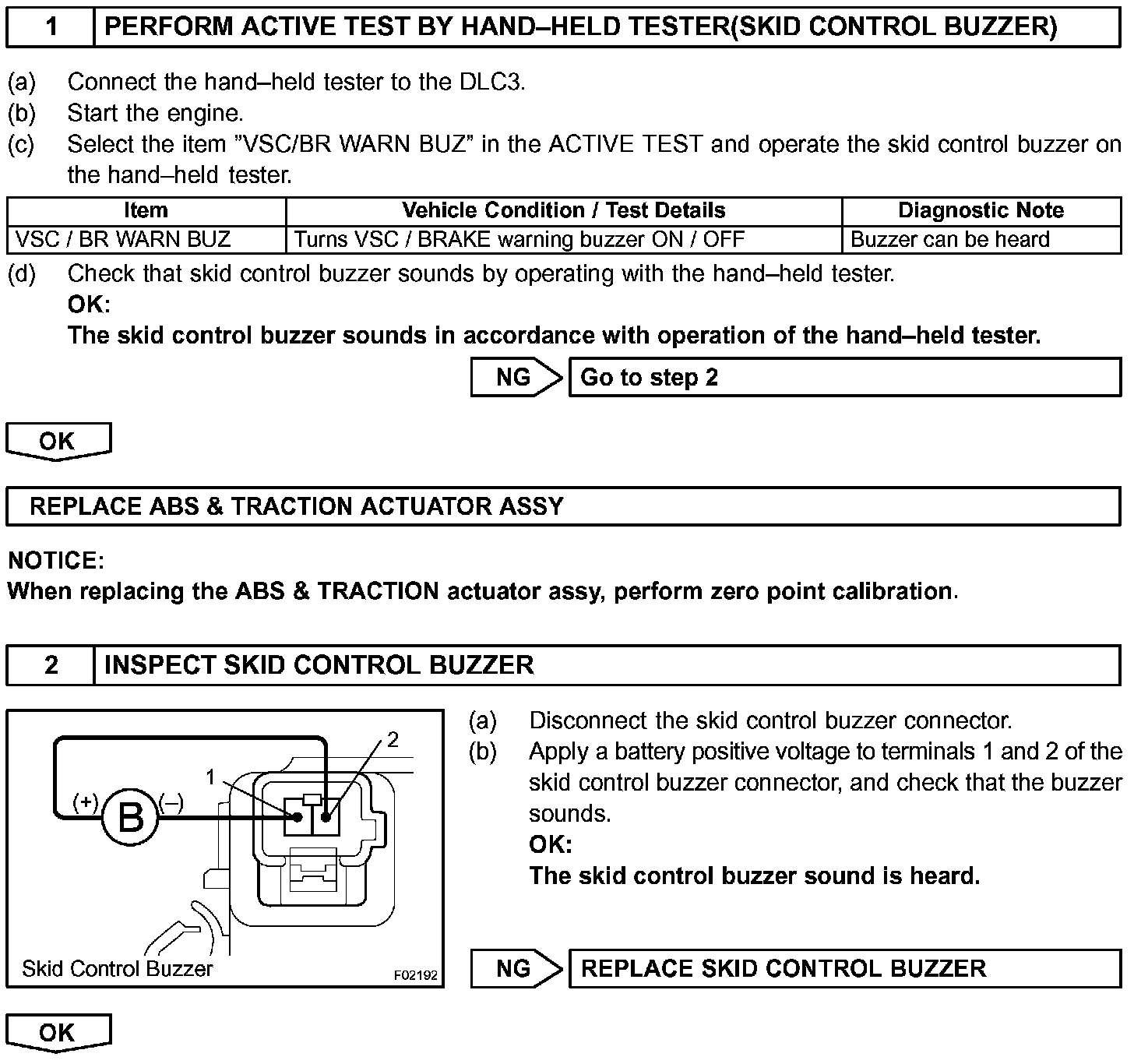 The ABS & traction actuator assembly (skid control ECU) receives the alarm demand signal from the ECM and operates the skid control buzzer.
