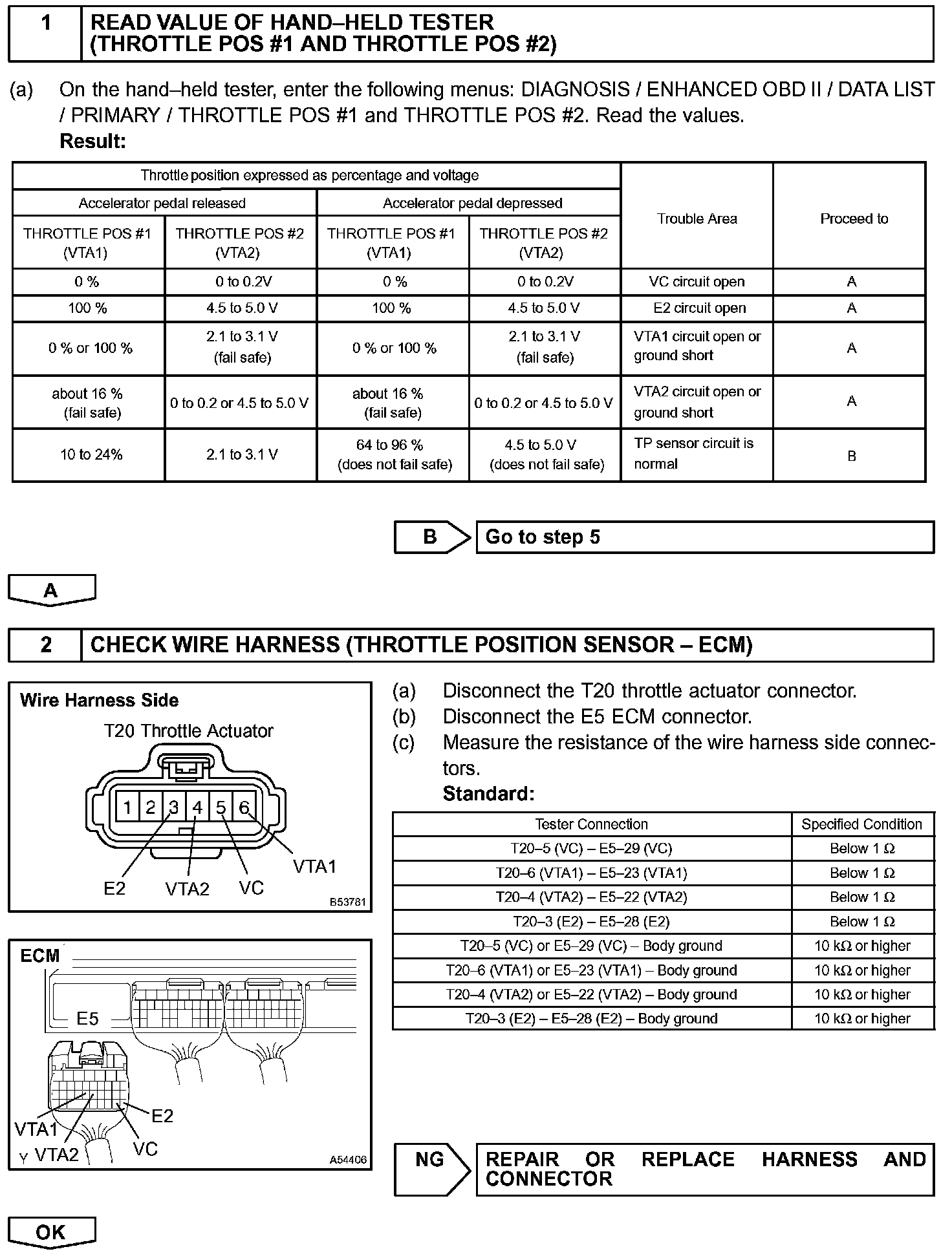 If VTA1 is within 0.02 V of VTA2, the ECM interprets this as a short circuit in the throttle position sensor system and will set a DTC.