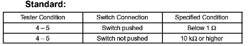 b. Check the resistance between the terminals of the connector when the switch is operated.