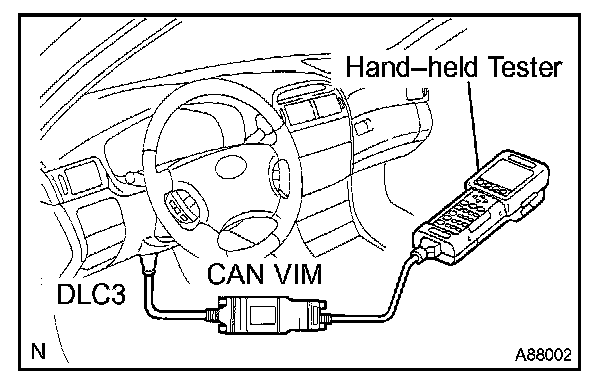 a. Connect the hand-held tester to the Controller Area Network Vehicle Interface Module (CAN VIM). Then connect the CAN VIM to the DLC3.