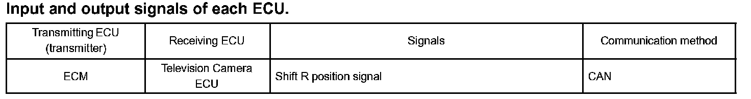 The ECM, through the CAN communication system, inputs the R position signal from the neutral start switch to the television camera ECU when the shift lever is moved to the R position.