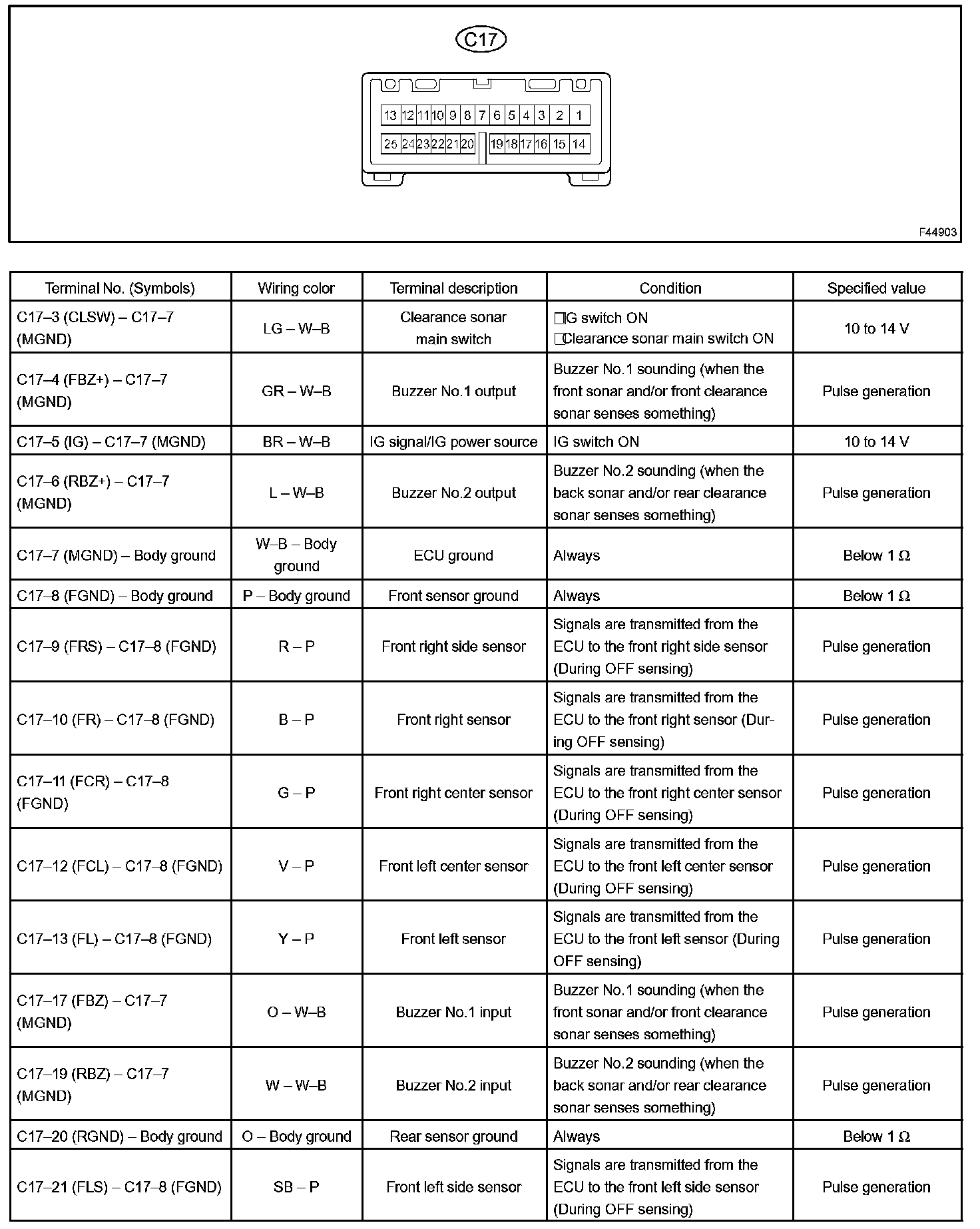 Terminals Of ECU / Pinouts - Clearance Warning ECU Assy Part 2: