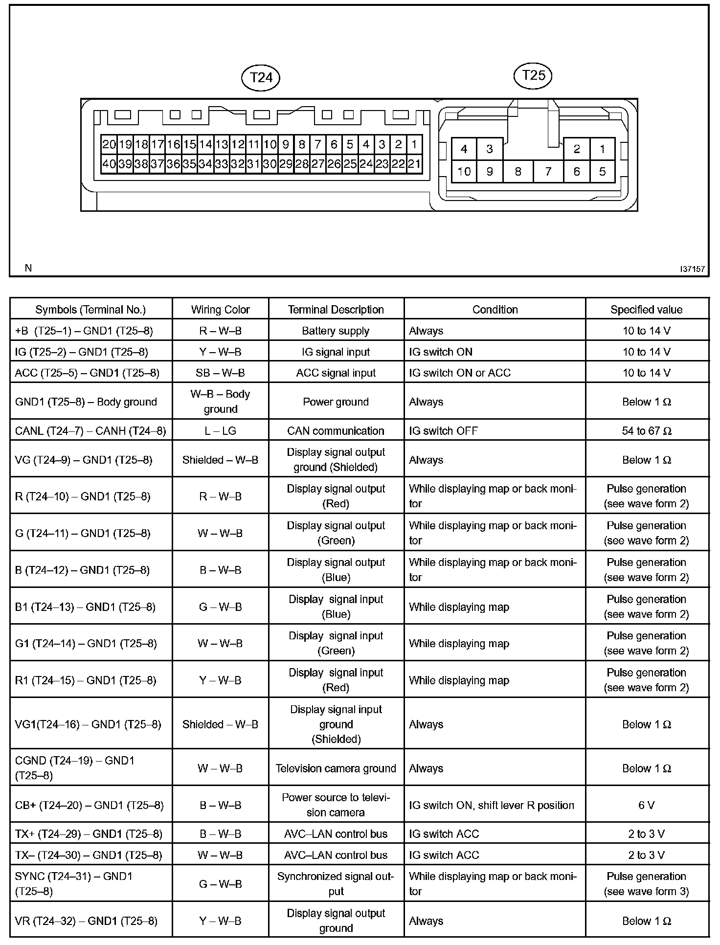 TERMINALS OF ECUTerminals Of ECU / Pinouts - Television Camera Assy: