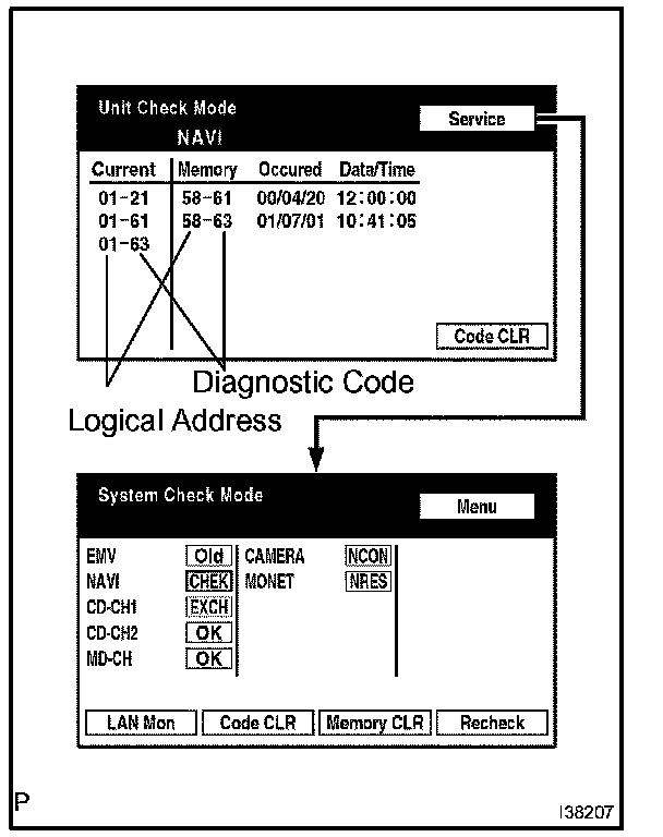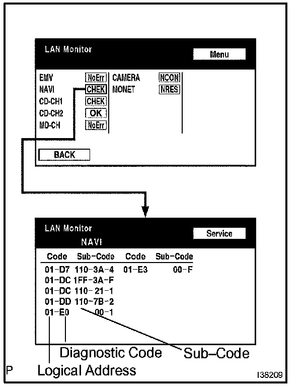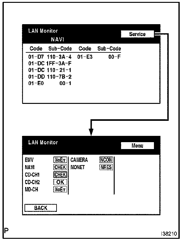 - If check results of other devices are "CHEK," press the "Service" switch to return to the original "LAN Monitor" screen. check the individual communication diagnostic screen for next device and record the result on the customer problem analysis check sheet.