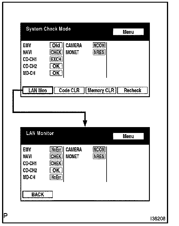 a. Return to the "System Check Mode", and press "LAN Mon" switch to enter the LAN monitor screen.