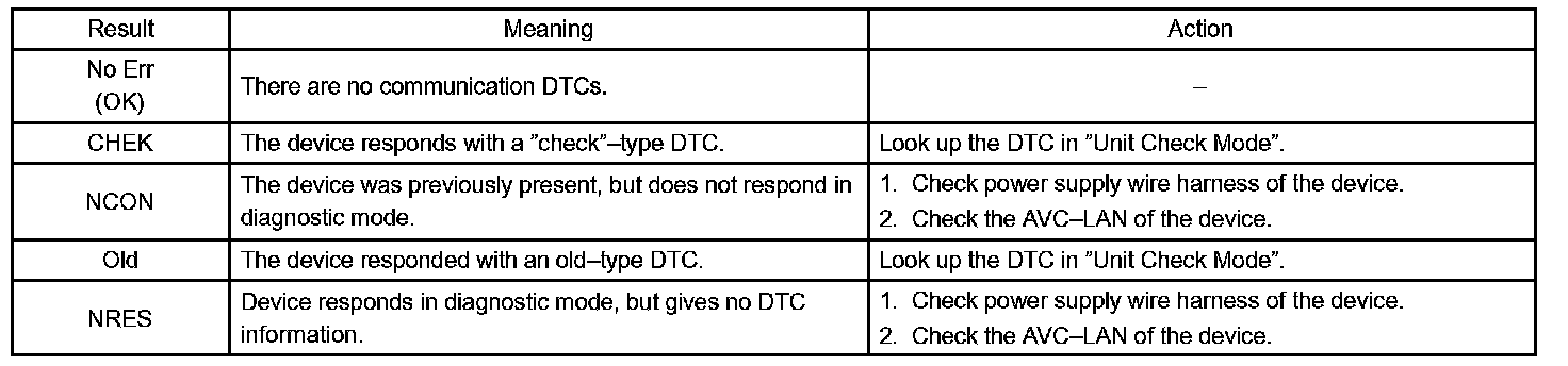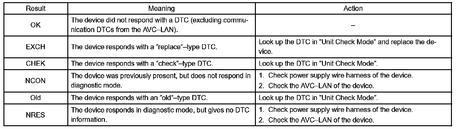 HINT: Result codes for all devices are shown.