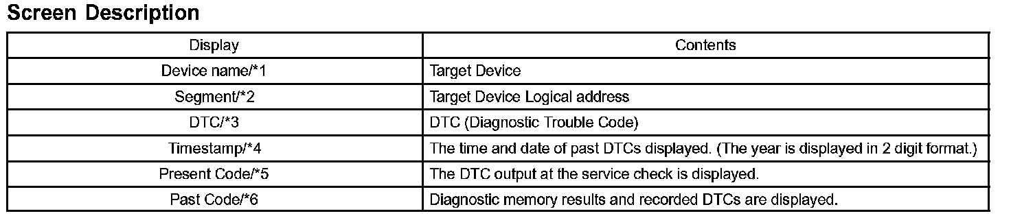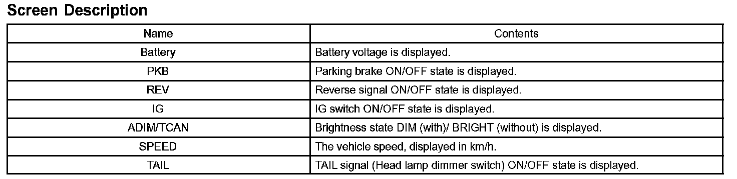 - This screen is updated once per second when input signals to the vehicle are changed.