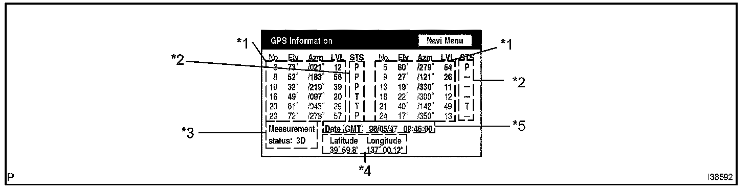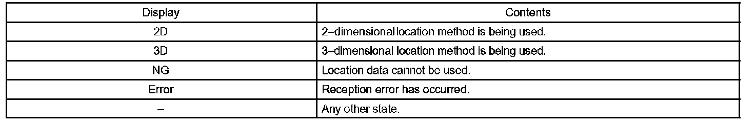 Information from a maximum of 12 satellites is displayed on the screen. This information includes the target GPS satellite number, elevation angle, direction and signal level.