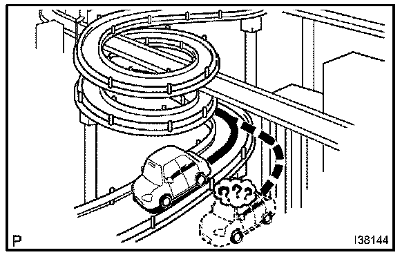 8. When the ignition switch is put into the ACC/OFF position on a turn table before parking, the current vehicle position mark may not point in the correct direction. The same will occur when the vehicle comes out of parking.