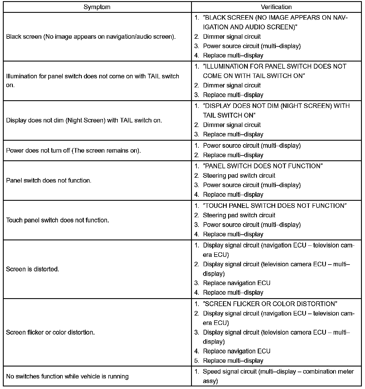 - Methods used to verify the cause of the problem are listed in order of probability in the verification column.
