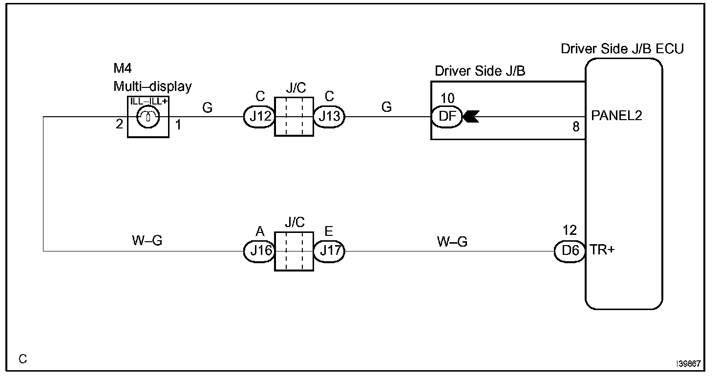 The multi-display dims the multi-display and panel switch by receiving the dimmer signal from the driver side J/B ECU.