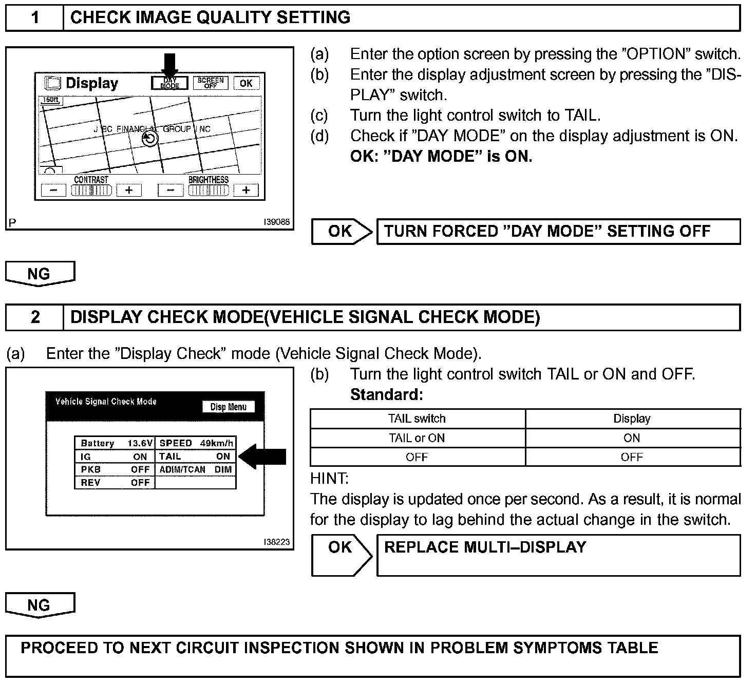 DISPLAY DOES NOT DIM (NIGHT SCREEN) WITH TAIL SWITCH ON
