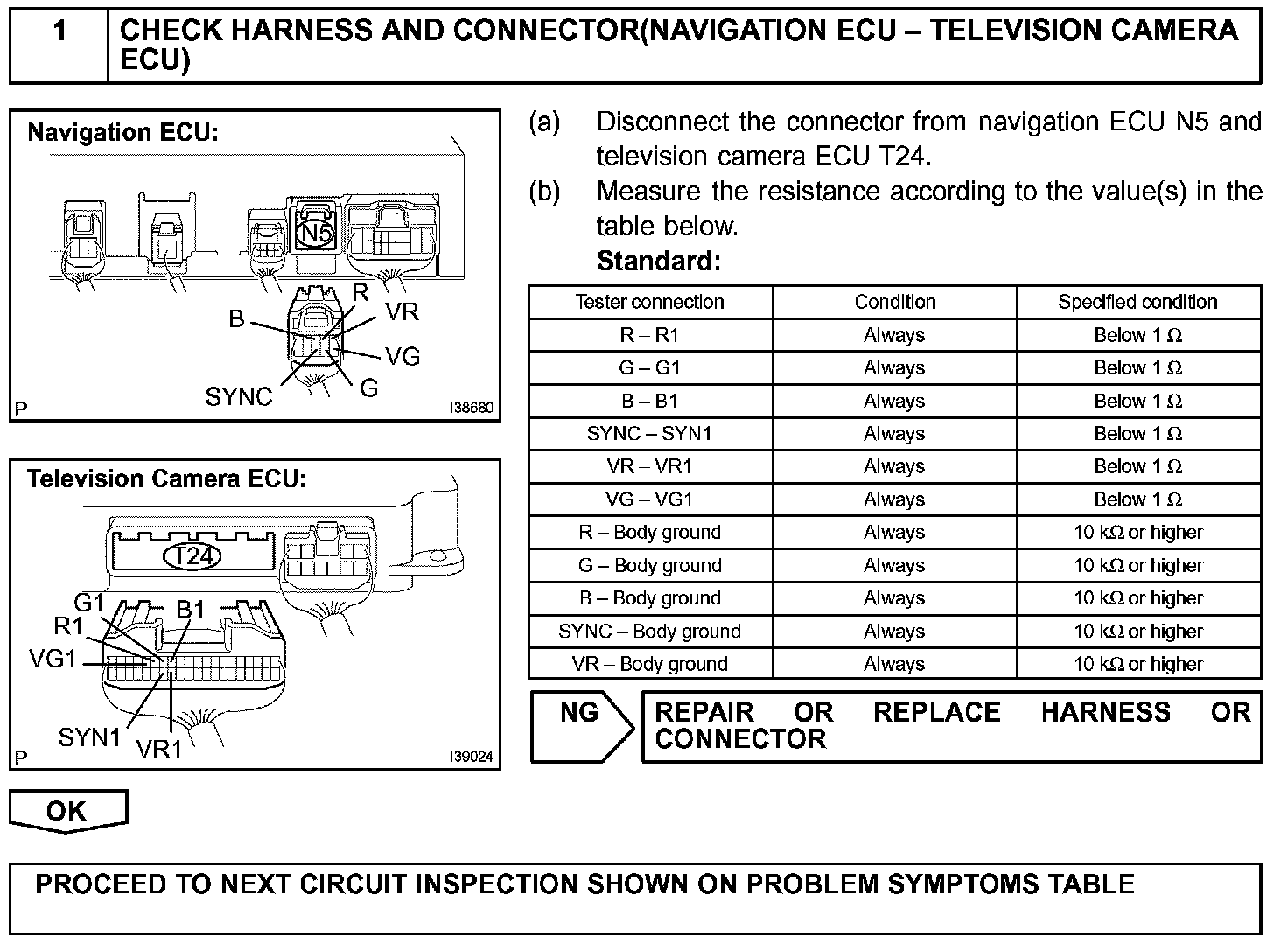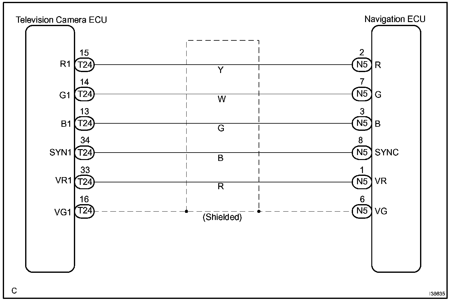 This is the display signal circuit from the navigation ECU to the television camera ECU.