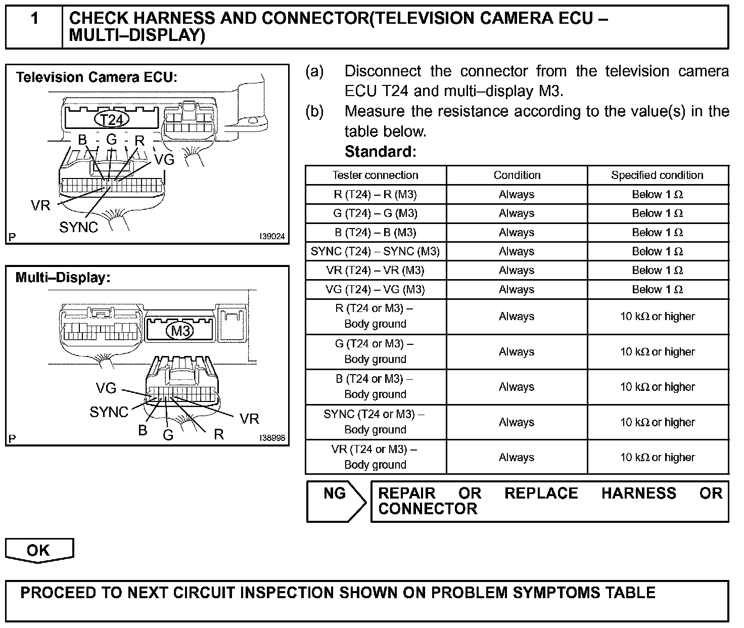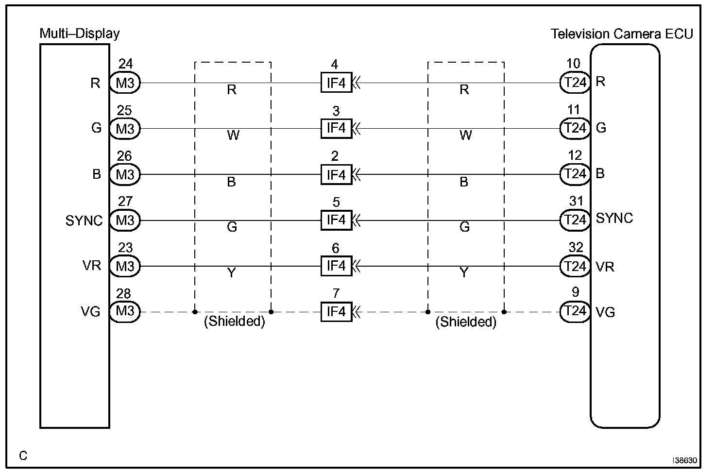 This is the display signal circuit from the television camera ECU to the multi-display.